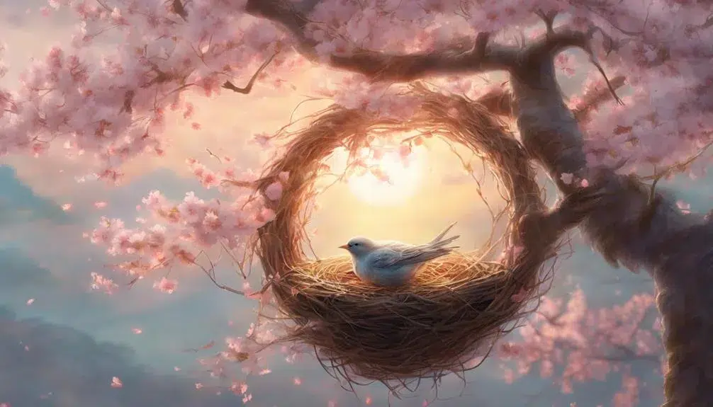 In wrapping up, you've discovered that bird nests aren't just simple structures; they're potent symbols enriching your spiritual journey. They remind you that new beginnings and hope are always within reach, and the comfort of home is invaluable.