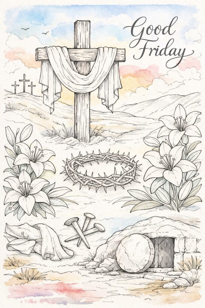 Coloring pages offer a relaxed way for kids to learn about Good Friday. You can find free printables online—crosses, praying hands, and other symbols pop up a lot.