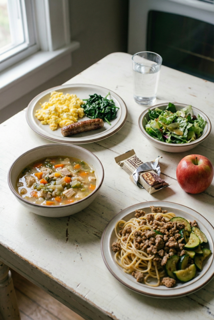 • Protein Staples: Whey isolate, Greek yogurt, canned tuna, shrimp, and eggs.