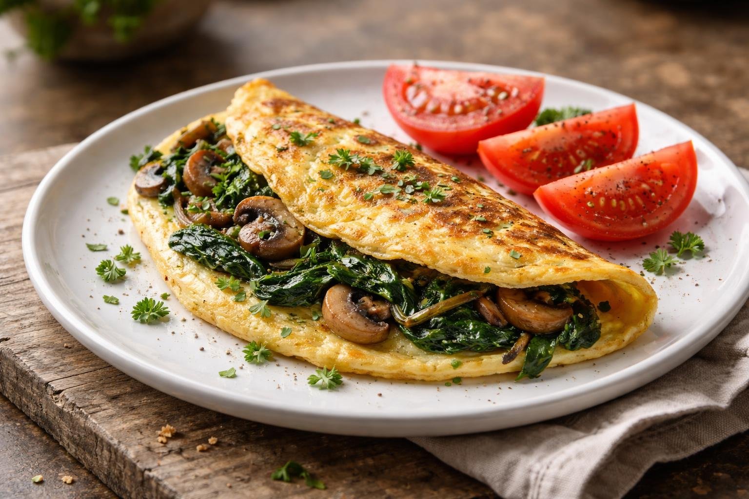 This spinach and mushroom omelet is a nutritious and delicious option for a healthy breakfast. Packed with fresh vegetables and protein, it provides a great start to your day.