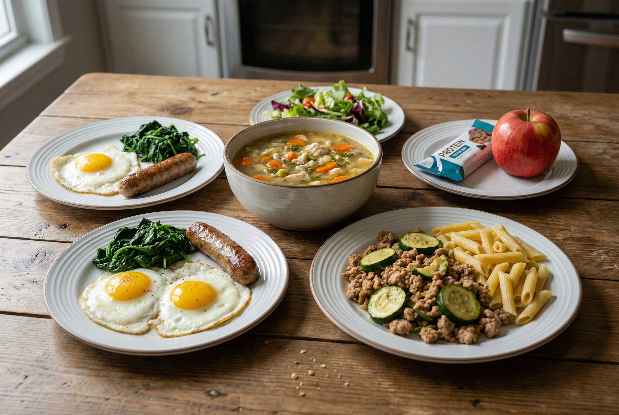 - Protein Staples: Whey isolate, Greek yogurt, canned tuna, shrimp, and eggs.