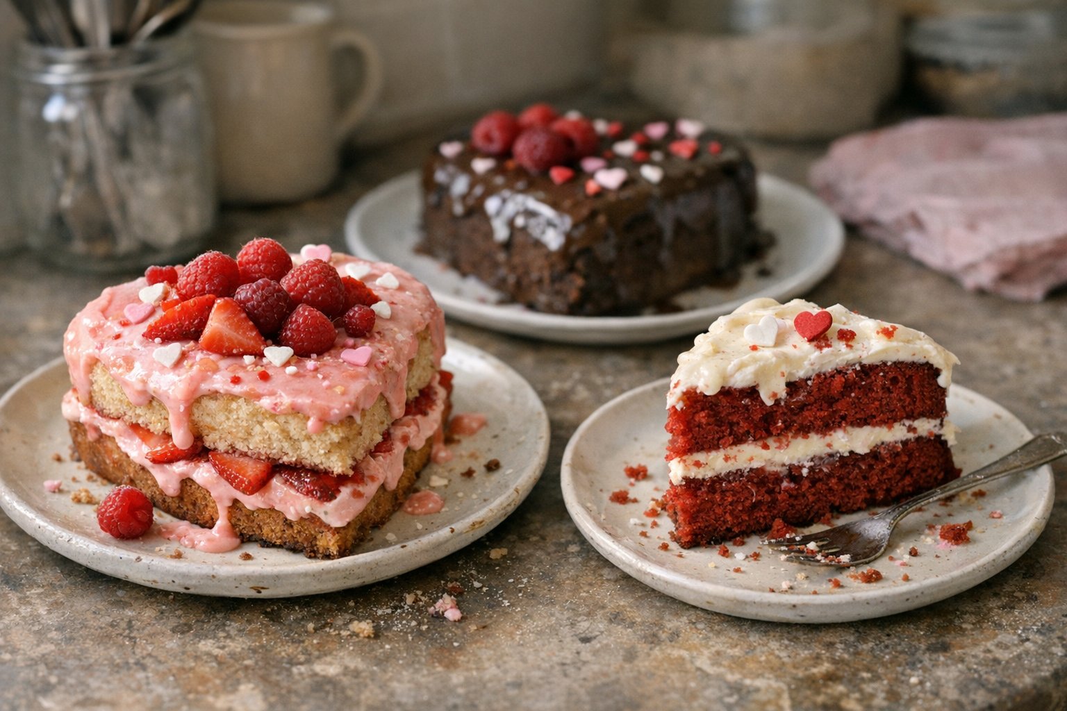Decorate your cake with Valentine’s sprinkles, white chocolate drizzle, or piped frosting borders.